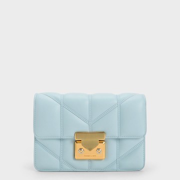 TORY BURCH 菱格車線設計三折釦式小短夾(水藍)