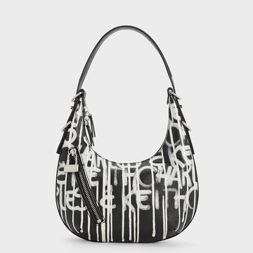 PINKO黑色塗鴉感長肩帶包