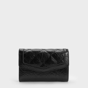 agnes b.鱷魚壓紋卡片長夾(黑)
