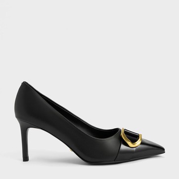 高跟鞋 HELENE_SPARK 簡約優雅鍊條釦羊皮尖頭高跟鞋-黑