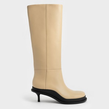 Taroko 個性褲管鉚釘寬版尖頭時尚秋冬粗跟中筒靴(3色可選)