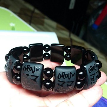 點我下載╯☆╯雅痞晶館╯☆ ╯ 天然黑瑪瑙刻六字箴言手排~黑玉髓手鍊手環~莊嚴又有質感+黑瑪瑙8mm