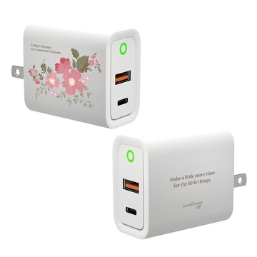 【插畫家聯名】wwiinngg甜美小粉花USB3.0+PD20W雙孔充電器