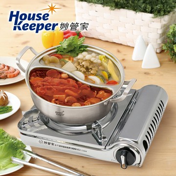 妙管家 一體成型SUS304不鏽鋼鴛鴦鍋30cm HKPG-1126+MR. Stove攜帶式防風卡式爐DB-081(含鍋蓋、收納硬盒)