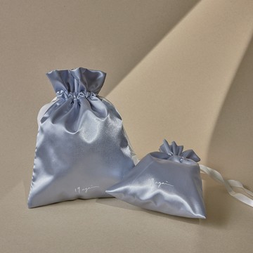 日雜風禮物 荷葉邊束口袋 靛藍山櫻花