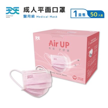 【天天】成人平面醫用口罩,粉色 50入/盒