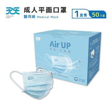 【天天】成人平面醫用口罩,藍色 50入/盒
