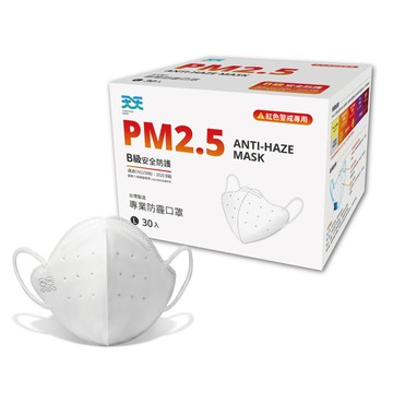 【天天】PM2.5 防霾口罩 新B級防護 紅色警戒專用 L尺寸 (黑色) 30入/盒