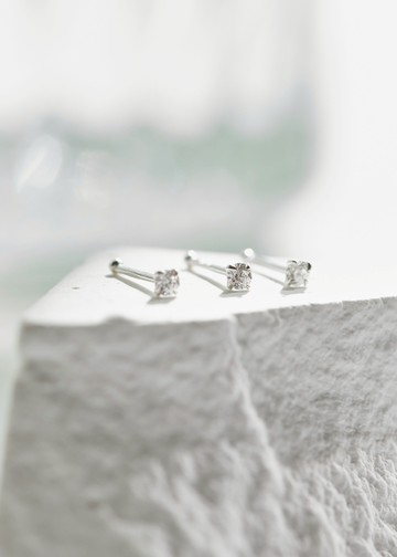 【Angel & Me】迷你 3mm瑞士單鑽鋯石 六爪 皇冠 s925 純銀耳環 耳夾 防過敏