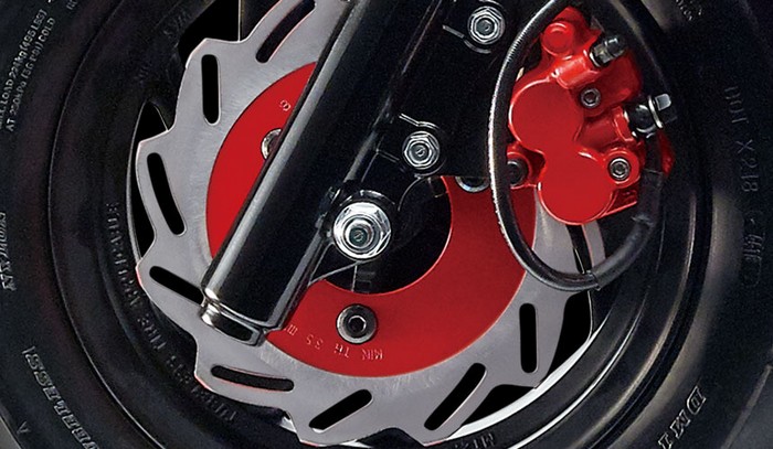 前輪配備高制動刹車加大碟盤,急刹、快停隨你靈活操控,無論載貨、出遊,讓你輕鬆又自在。