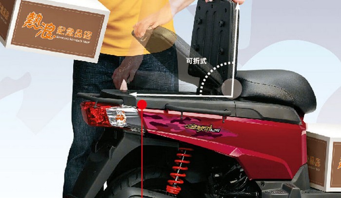 原廠專利設計的可折式後座椅墊,座墊一立就是舒適背架;後架超堅固耐用,不需加裝貨架,省掉拆裝麻煩,簡單便利好加載!