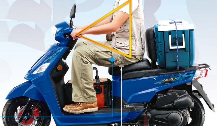 以人體黃金比例設計,前座離地750mm,上下車及等紅綠燈都舒適。