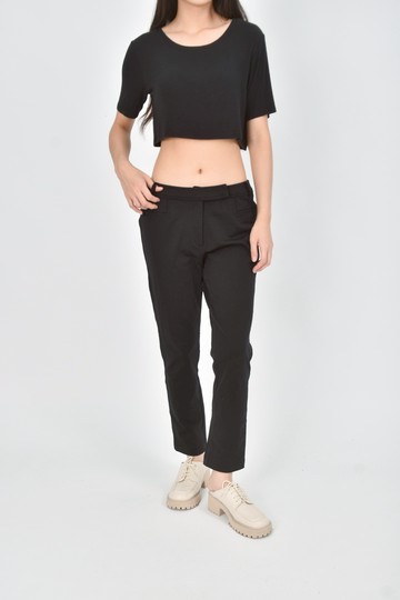 (L) top do高腰西裝鬆緊腰黑色長褲