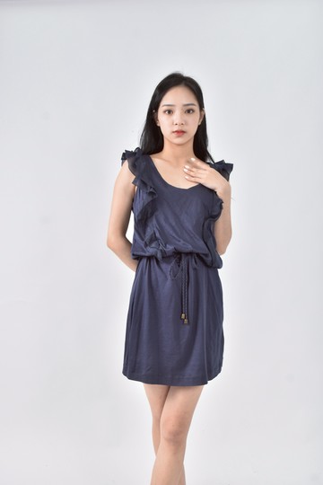 高含棉不對稱V領抽皺美背無袖牛仔洋裝-OB嚴選