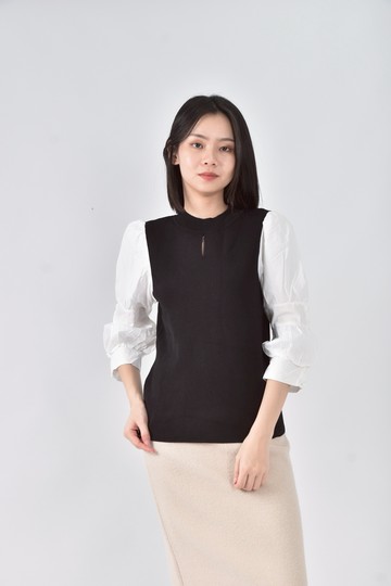 (M) key wear秋冬棉質針織拼接黑色長袖上衣