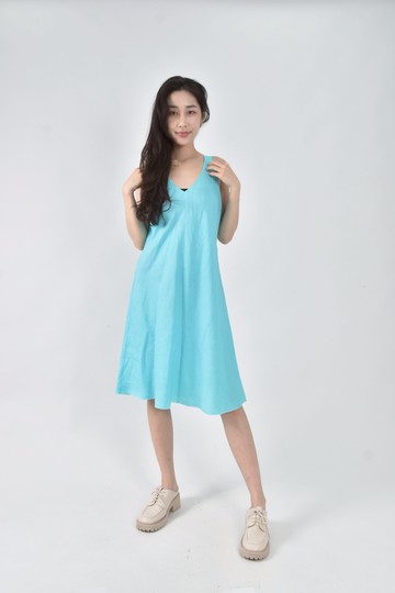 懶人不易皺.雙肩帶美背傘襬長洋裝