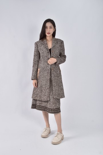 【NaSuBi Vintage】無領設計薄毛古著西裝外套