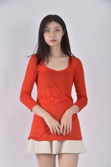(S) icb長版紅色長袖上衣