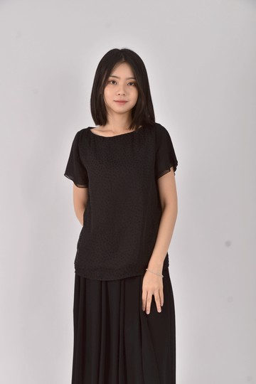 (S) 質感圓領黑色長袖上衣