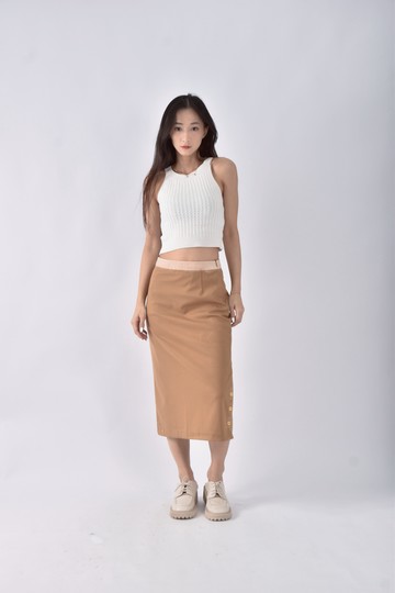 (L) 質感棕色長裙