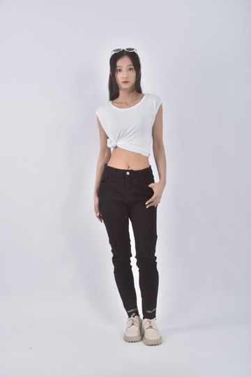 (S) i real高腰緊身黑色長褲