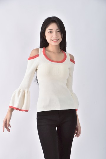 (S) dazzlin露肩喇叭袖白色長袖上衣