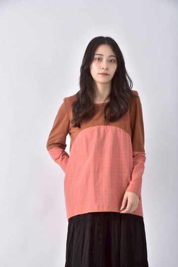 拼接襯衫 - 粉紅