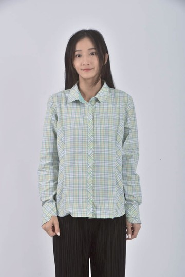 (S) traveler格紋排扣綠色襯衫上衣