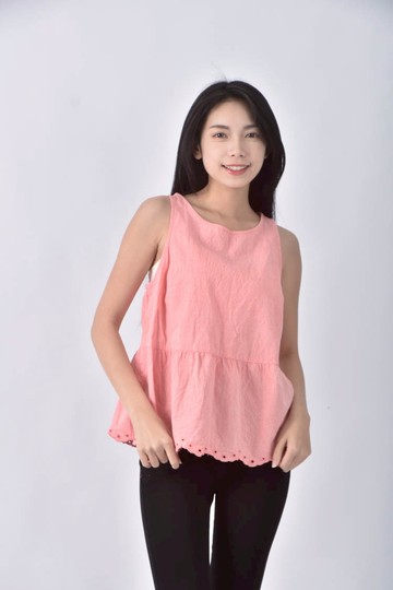 (S) forever21質感修身短版圓領無袖粉色上衣