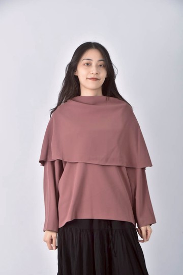 a la sha 泡泡紋織帶跳色大斗篷上衣