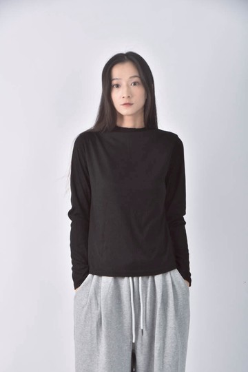 日質筆記天竺棉不收邊長袖 - 2色 - 黑