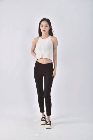 (L) 伊蕾iley高腰假口袋黑色長褲