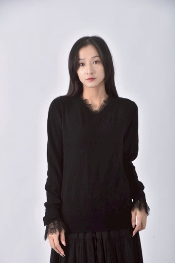 (M) classy韓牌雷絲邊黑色長袖上衣