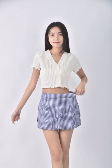 附皮帶~格紋腰鬆緊泡泡短裙 JM8470-561【現貨】