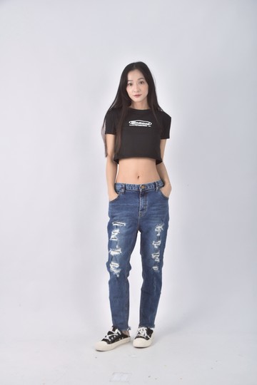 (L) kc高腰丹寧牛仔刷破藍色長褲