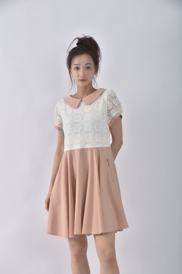 CLL巧玲瓏 假兩件壓褶珍珠波浪領洋裝 3195202