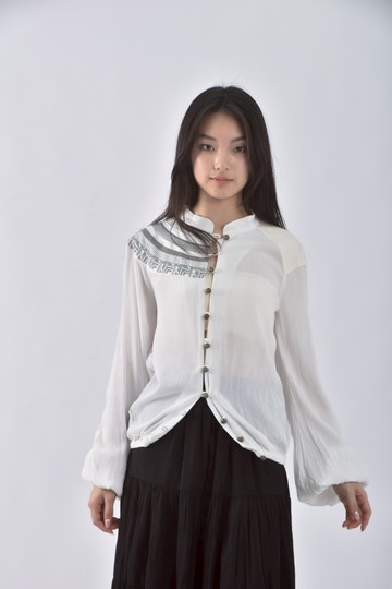 (M) 裂帛亞麻立領中國風白色襯衫上衣