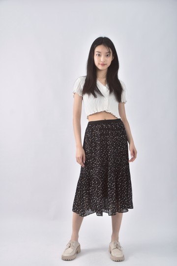 緞面後鬆緊腰設計打摺長裙(FC37L0L0280) - Te chichi