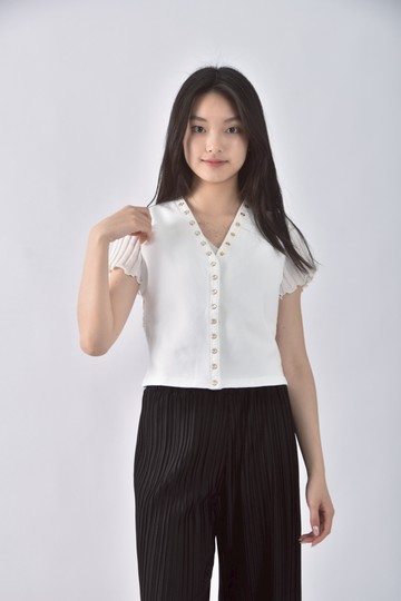 加購優惠(M) a m fairyland質感無袖素面白色上衣