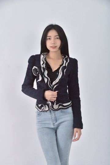 (S) diamondlabel o質感棉質純棉雙色滿版印花長袖藍色外套