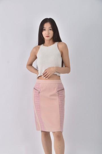 (L) gucci質感丹寧牛仔綁帶粉色短裙