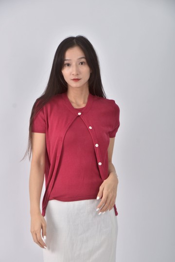 (S) hilton weimee質感兩件式紅色短袖上衣