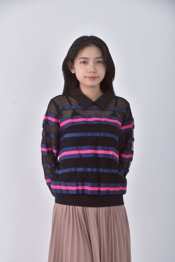 (L) net條紋白色長袖上衣