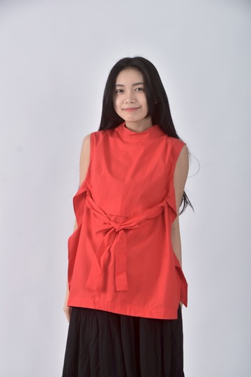 (XS(含)以下) 【凱欣私服】hava棉質無袖綁帶灰色上衣