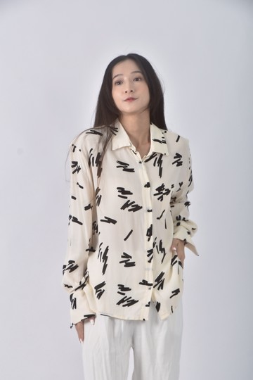(L) chloechen質感棉質印花杏色襯衫上衣