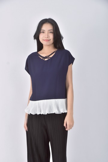 (S) eyescream質感假兩件藍色短袖上衣