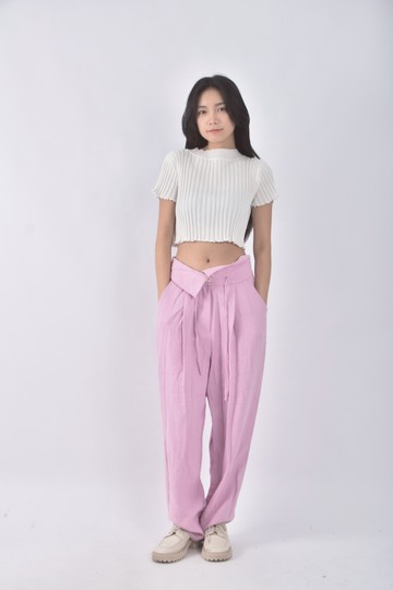 (L) ef de高腰質感棉質粉色長褲
