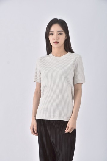 (S) 質感圓領白色短袖上衣