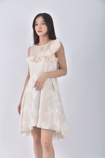 (S) fashion union荷葉邊杏色洋裝
