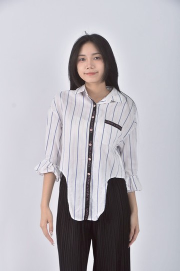 (S) mia mia質感棉質條紋白色短袖上衣